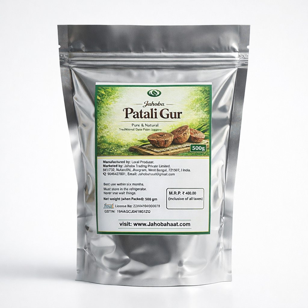 Jahoba Patali Gur – 500g brings the taste of traditional West Bengal right to your kitchen. Made from fresh date palm sap, this solid cube jaggery is naturally processed, free from chemicals and preservatives.