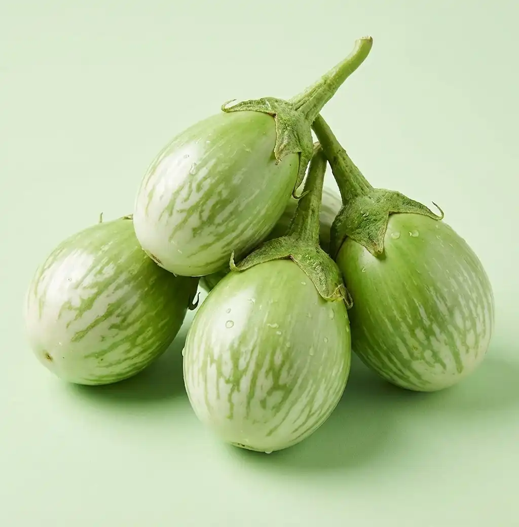 Round green brinjal is commonly used in sabzi, fry, curry, and stuffed recipes. It becomes soft after cooking and mixes well with spices. It is widely used in Bengali and Indian kitchens.